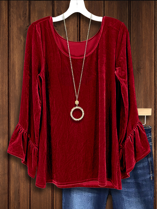 This Red Velvet Ruffle Sleeve Blouse is the perfect blend of elegance and comfort. The luxurious velvet fabric paired with delicate ruffle sleeves makes this blouse a stunning option for evening outings or festive events. Its rich red hue and sophisticated design exude classic Southern charm, perfect for dressing up your favorite jeans or skirt.