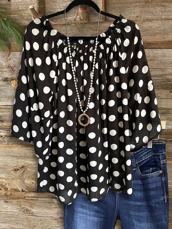 Classic meets playful in this black and white polka dot blouse. Its vintage-inspired charm is perfect for adding a retro flair to your everyday look—ideal for coffee dates and community events.