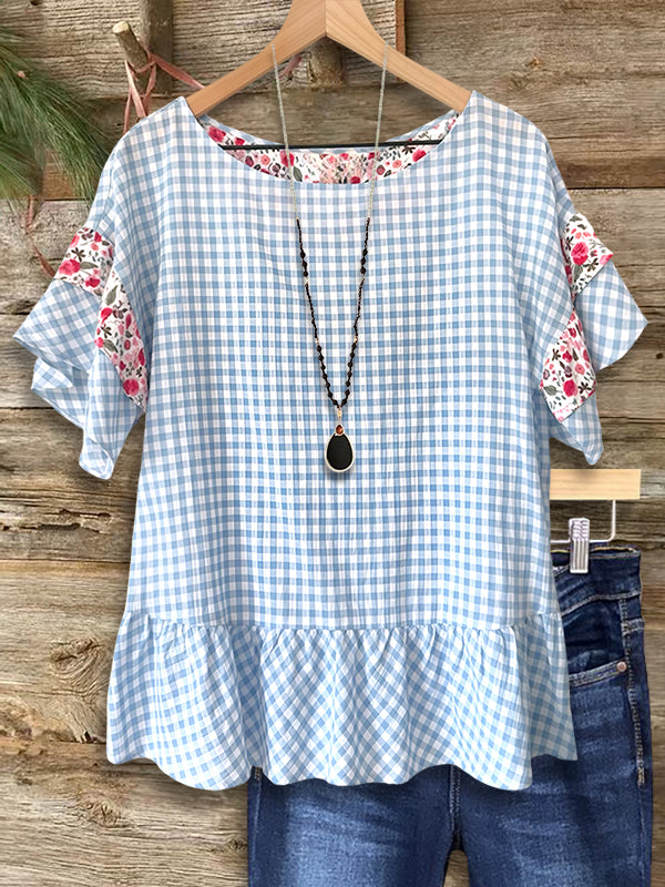 This Checkered & Floral Patchwork Ruffle Blouse brings together two favorite prints in one charming top. With layered ruffles and a relaxed fit, it’s equal parts sweet and stylish. Great for picnics, road trips, or adding Southern whimsy to your day.