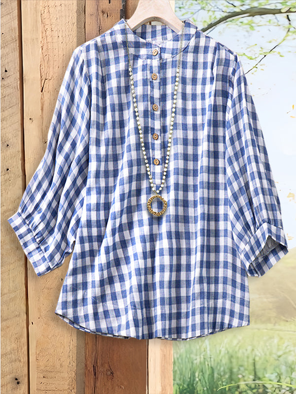 A must-have for every Southern belle, this classic plaid print casual blouse offers effortless style and comfort. The timeless plaid pattern makes it ideal for casual days or layering with your favorite jacket for a polished look.