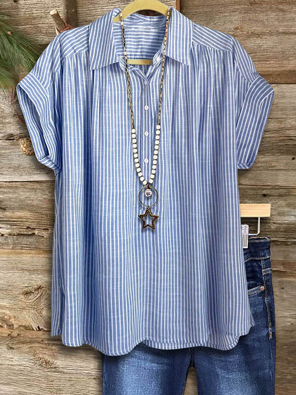 Embrace timeless style with this classic striped blouse. Made of soft, breathable fabric, it's perfect for any casual occasion. Pair with jeans or shorts for a laid-back Southern look.
