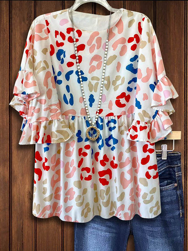 Unleash your wild side in our Colorful Leopard Ruffle Casual Blouse, a fierce and fashionable choice for those who love to make a statement.