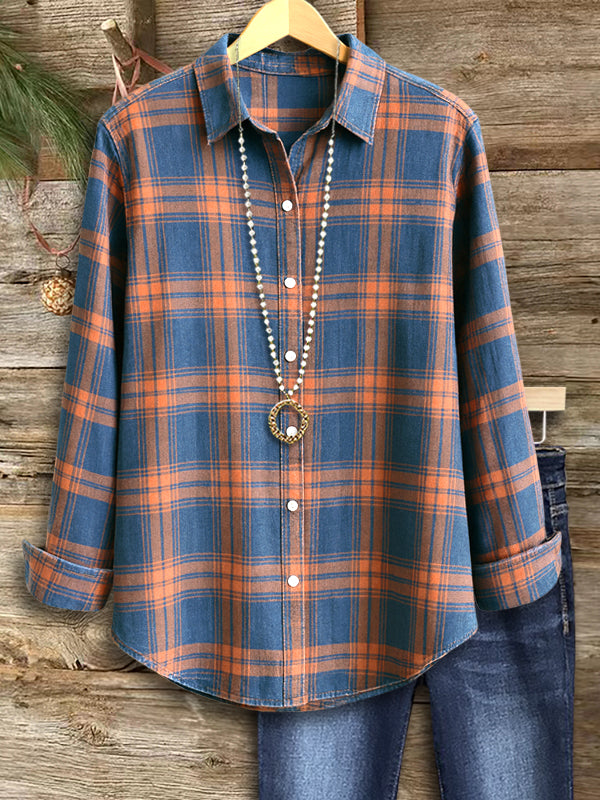 This cozy heritage plaid shirt blends timeless charm with laid-back comfort. Crafted in warm autumn tones, it features a classic button-down silhouette that works perfectly for everyday wear. Soft, breathable fabric makes it ideal for layering, while its relaxed fit brings easy versatility to your seasonal wardrobe.