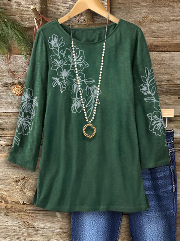 Embrace effortless elegance with our Forest Bloom Tunic. The soft, breathable fabric and relaxed fit pair beautifully with the subtle floral prints along the sleeves. Perfect for layering, this round-neck, long-sleeve top offers a charming balance between casual comfort and feminine grace.