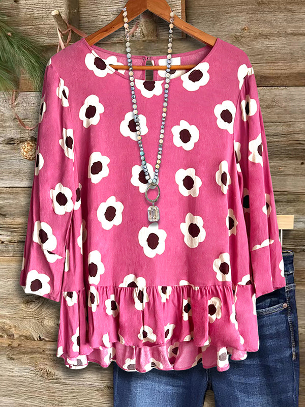 With its softly ruffled hem and blooming floral print, this blouse is all about sweet sophistication. It flatters with just the right amount of shape and flows gently for all-day comfort. Whether you’re twirling through a garden or catching up over coffee, this top will have you looking effortlessly lovely with a Southern smile.