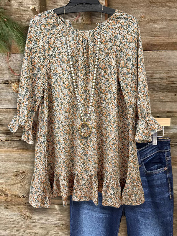 Add a touch of romance to your wardrobe with our Floral Ruffled Casual Blouse. This charming blouse features a delicate floral print combined with playful ruffled details along the sleeves and neckline. The soft, lightweight fabric ensures comfort throughout the day, while the feminine design makes it perfect for a variety of casual occasions. Pair it with jeans or a skirt for a look that effortlessly blends style and comfort.