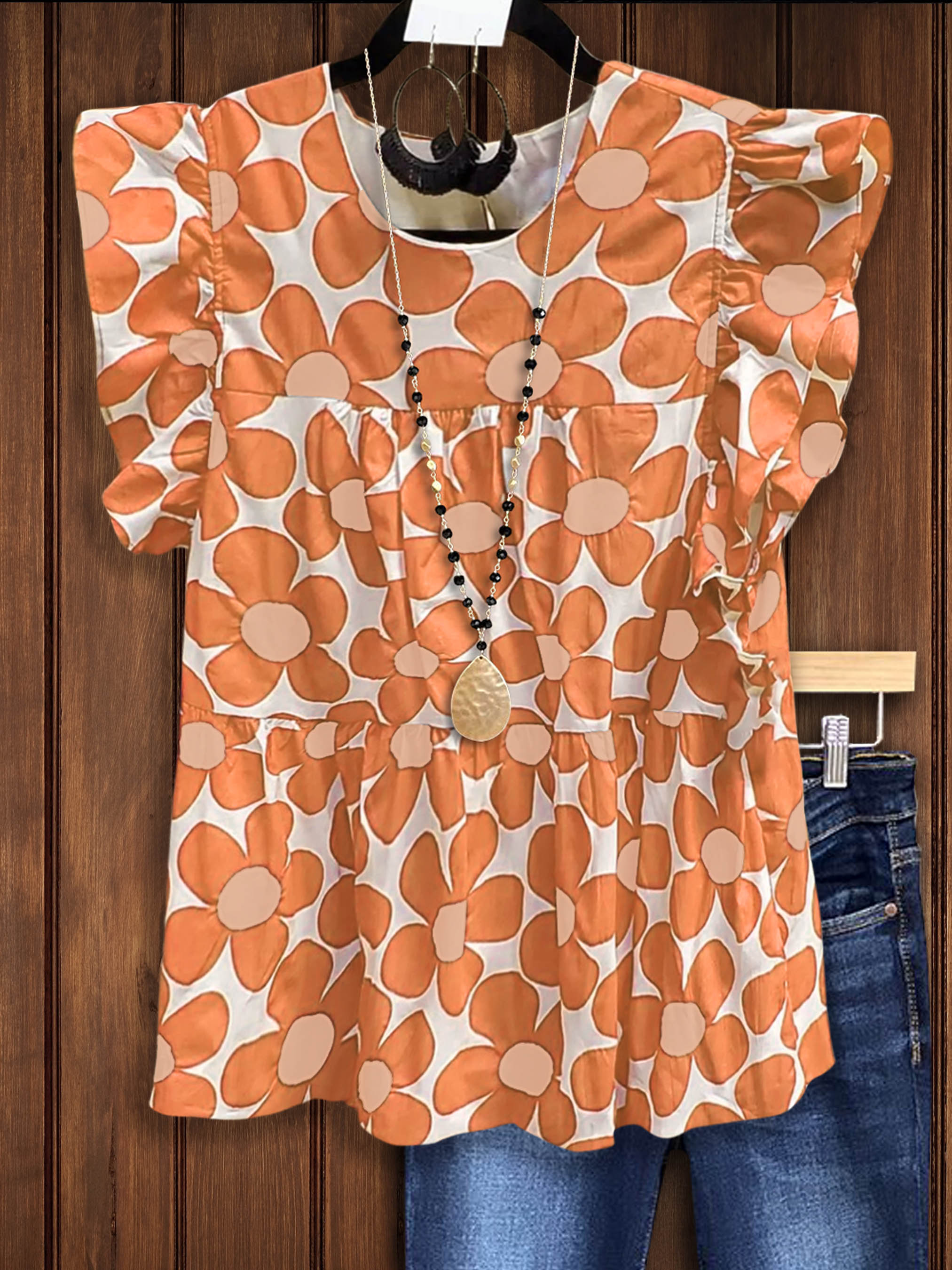 Embrace the beauty of nature with our Flower Print Ruffled Casual Blouse. Delicately adorned with floral prints and feminine ruffles, this blouse captures the essence of Southern romance.