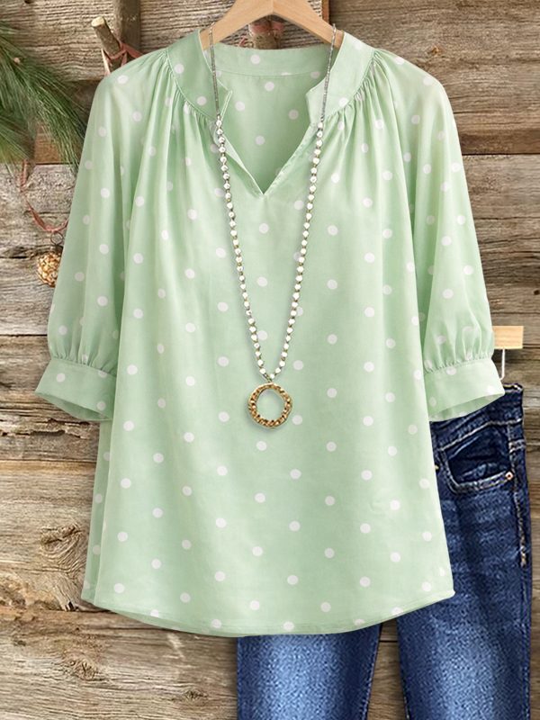 Soft, playful, and effortlessly stylish, the Fresh Mint Polka Dot Blouse adds a pop of charm to your everyday wardrobe. The gentle mint color paired with classic polka dots creates a lighthearted yet elegant look. Designed with a relaxed fit and airy fabric, it keeps you comfortable all day long while pairing perfectly with denim or skirts.