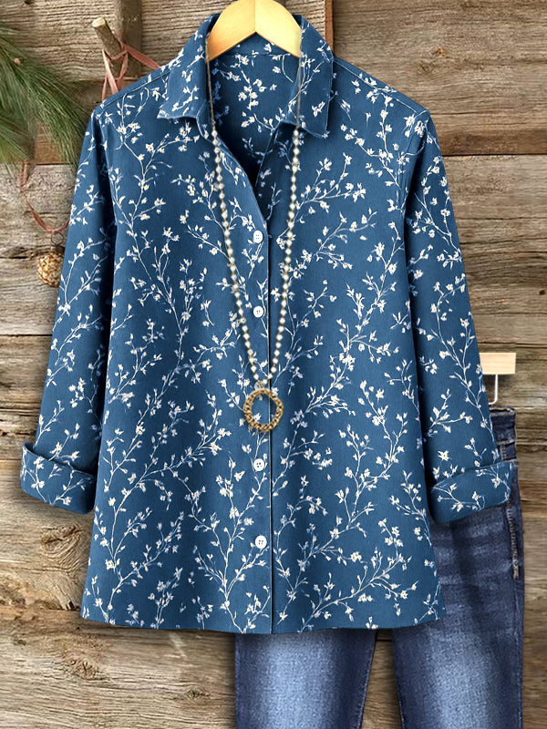 Delicate white florals on rich indigo create timeless charm in a relaxed everyday silhouette.