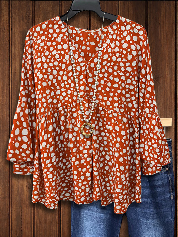 Elevate your casual outfits with our Irregular Dot Printed Ruffled Casual Blouse. This charming top boasts a unique irregular dot pattern that adds a fun and modern twist to a classic design. The ruffled details around the sleeves and neckline enhance its playful character, making it a standout piece for any casual occasion. Crafted from lightweight fabric, it ensures comfort while keeping you stylish from morning coffee to evening strolls.