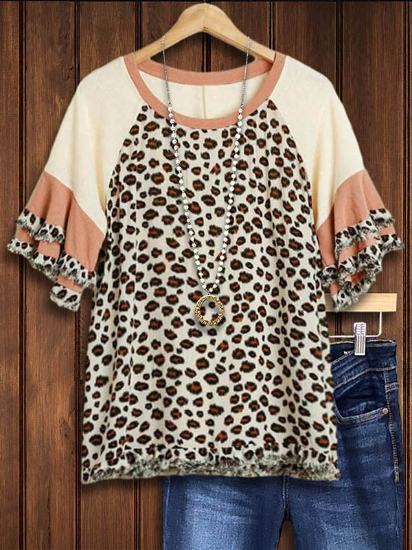 Unleash your wild side with this chic leopard print blouse featuring ruffled panels for a touch of feminine flair. The perfect piece to add a bold statement to your Southern style.
