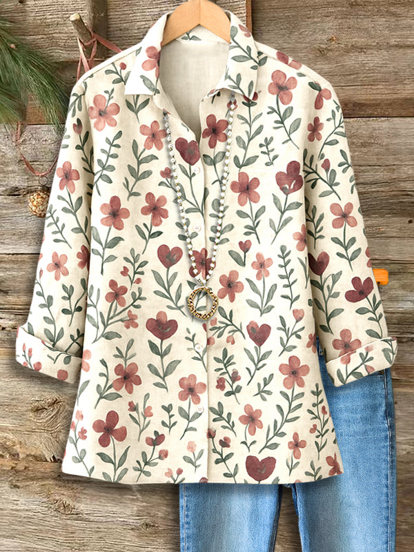 Soft, earthy florals bring a gentle vintage charm to this breathable button shirt. Its natural tone and hand-painted look make it perfect for relaxed days, nature walks, or cozy weekend gatherings. Lightweight and easy to style, it pairs beautifully with denim for a laid-back yet feminine touch.