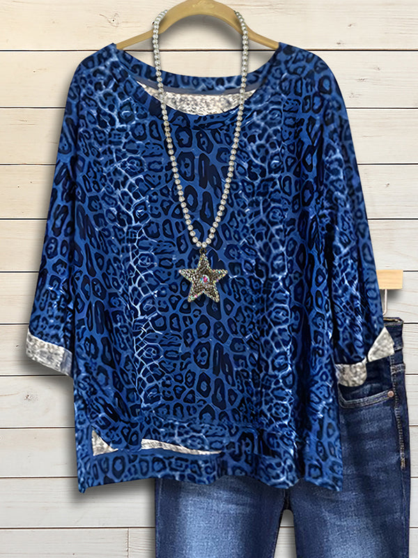 Add a bold twist to your style with this Midnight Leopard Relaxed Top. Featuring striking blue leopard prints, the blouse is designed with a loose silhouette for all-day comfort. Pair with dark denim or skirts for an effortlessly edgy look.