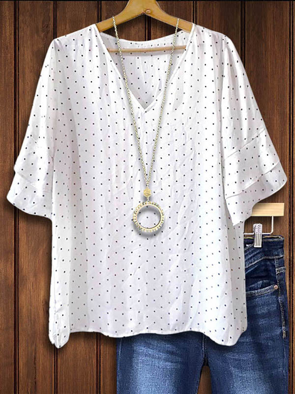 Add whimsy to your wardrobe with our Polka Dot Print Layered Ruffle Blouse. Southern sweetness meets playful charm in this blouse, showcasing polka dot prints and layered ruffles for a delightful and feminine touch.