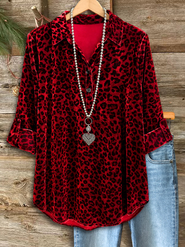 Add a bold touch to your everyday style with this Red Velvet Leopard Button-Up. Its soft velvety texture and relaxed fit make it perfect for both casual days and nights out. Pair it with denim for an effortlessly chic look that turns heads without trying. Comfortable, confident, and stylish—this shirt brings the perfect balance of attitude and ease.
