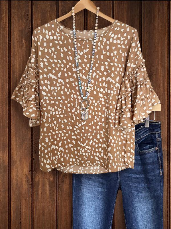 The Leopard Print Ruffle Sleeve Top is a fierce and fashionable choice for those looking to make a bold statement. With its eye-catching leopard print and trendy ruffle sleeves, this top effortlessly combines style and confidence for a standout look.