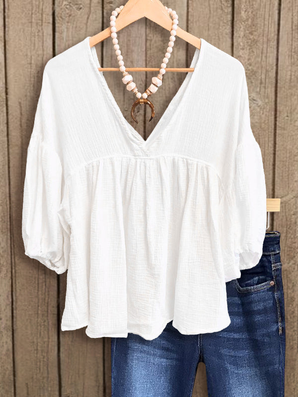 The Ruched Hem Puff Sleeve Top is a trendy and versatile piece that adds flair to any outfit. With its stylish puff sleeves and flattering ruched hem, this top is both chic and comfortable, making it a must-have addition to your wardrobe.