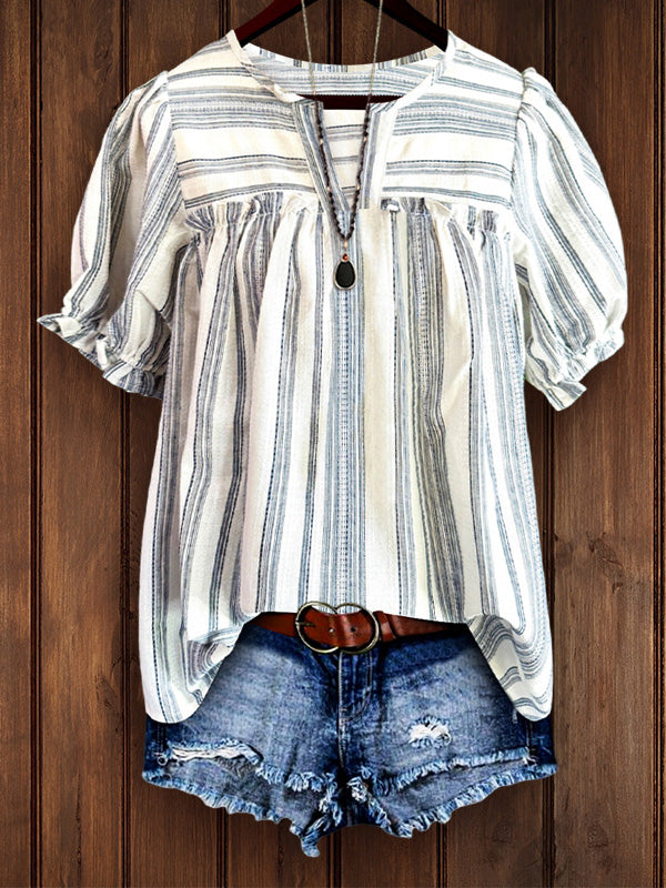 This shirt is a stylish and comfortable garment that combines a classic pattern with playful details. This shirt is made from breathable cotton fabric that ensures a soft and comfortable feel against your skin. This shirt features a timeless striped print and evenly spaced lines that add a touch of sophistication and visual interest.