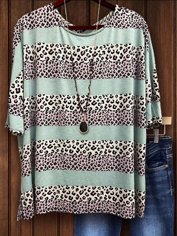 Channel your inner wild side with this vintage leopard print T-shirt. The soft fabric and horizontal striped leopard print design enhance daily comfort and fashion. Wear it with denim shorts or fitted jeans for a stylish yet durable look.
