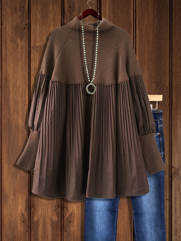 Pleated Fabric Patchwork Balloon Sleeves Sweater Babydoll Top