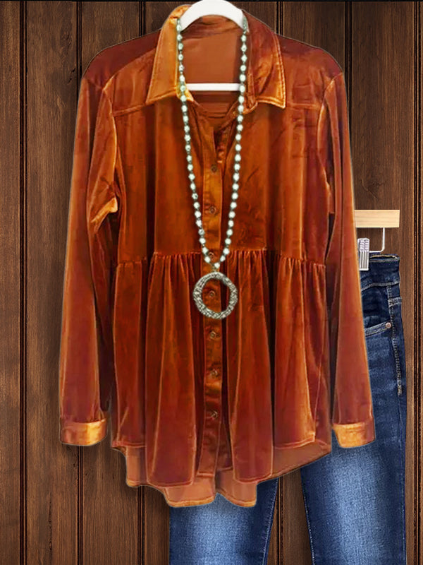 Fall in love with our Fall In Love Velvet Babydoll Tunic in Burnt Orange. This charming tunic features a romantic babydoll silhouette and a rich burnt orange velvet fabric. The loose fit and fluttery sleeves create a whimsical and feminine look. Whether paired with jeans for a casual day out or dressing up for a date night, this tunic will make you feel effortlessly beautiful. Let yourself be captivated by our Fall In Love Velvet Babydoll Tunic-Burnt Orange.