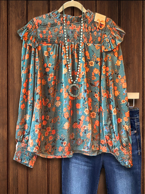 Embrace vintage-inspired fashion with our Vintage Floral Print Ruffle Top. Featuring a delicate floral print and feminine ruffle details, this top is perfect for those seeking a retro yet trendy style. Pair it with high-waisted jeans or a skirt for a nostalgic and chic outfit.