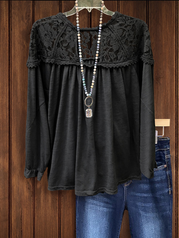 Add a touch of feminine charm to your look with our Casual Lace Panel Top. This lovely top features delicate lace panels, creating a perfect blend of casual and elegant style. Look effortlessly chic and feminine with this versatile piece.