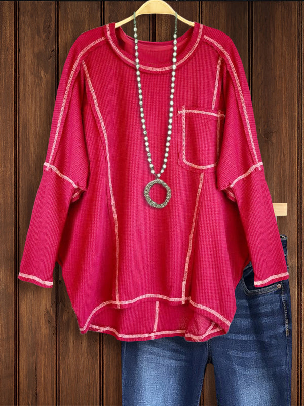 The Waffle Pocket Oversized Sweatshirt is a cozy and versatile garment that offers both comfort and style. With its oversized fit and convenient pocket detail, this sweatshirt is perfect for lounging or running errands while still looking effortlessly chic and relaxed.