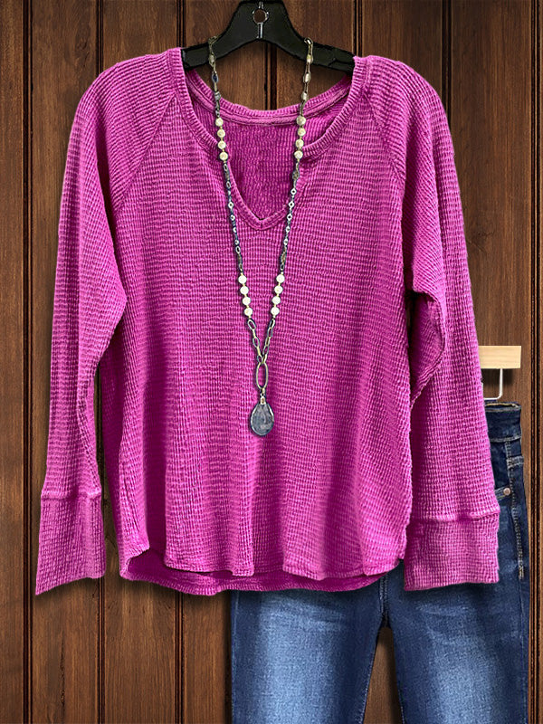 Stay stylish and comfortable in this Waffle Split Collar Top. The waffle fabric and split collar detail give it a contemporary look, suitable for any casual outing or gathering.