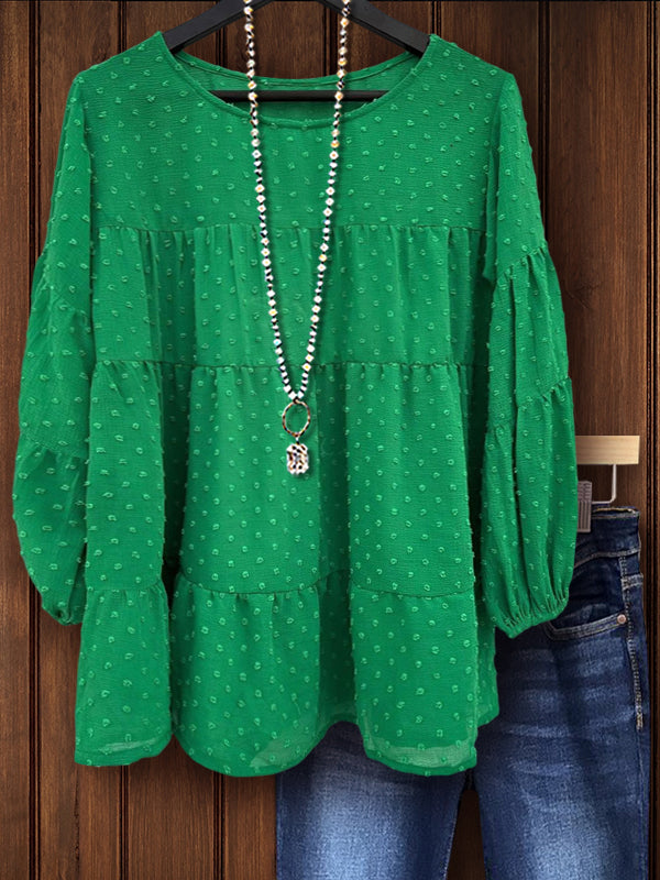 Embrace your playful side with our polka-dot textured doll top! This adorable top features charming polka dot textured fabric and a doll silhouette for a cute and youthful look. The flowy, loose fit adds a touch of femininity, while the breathable fabric ensures all-day comfort. Pair with blue jeans for a cute and casual look.