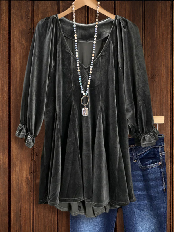 Elevate your casual wardrobe with our Grey Velvet Swing Top. This versatile top features a trendy swing silhouette and a luxurious grey velvet fabric. Perfect for pairing with jeans or dressing up with a skirt, this top effortlessly combines comfort and style. Embrace effortless elegance with our Grey Velvet Swing Top.