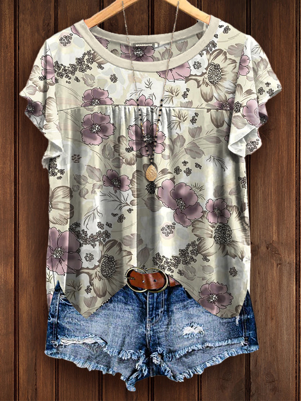 The top features a classic round neckline, which is simple and versatile, providing a clean and flattering frame for the face. The bell sleeves are designed with extra volume at the shoulder tapering down to a more fitted shape at the cuff. The print is subtle and dainty offering a refined elegance making a striking statement.