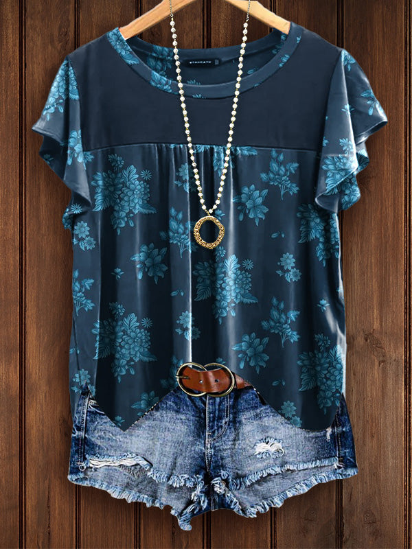 The round neckline is a classic design that offers a timeless and versatile look. The floral print is subtle and dainty offering a refined elegance and making a striking statement. The ruched detail helps to enhance the fit creating a more defined shape without being too tight. The puff sleeves are designed with extra volume at the shoulder tapering down to a more fitted shape at the cuff.