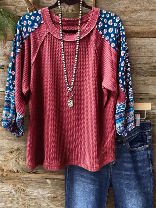 Elevate your casual wardrobe with our waffle patchwork raglan sleeve top. Unique paneling adds a touch of texture and sophistication, while raglan sleeves create a sporty and relaxed vibe. Made from comfortable and breathable waffle fabric, this tee is perfect for everyday wear. Stay comfortable and stylish with this versatile and stylish piece.