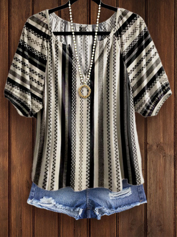 The shirt is made from breathable cotton fabric that ensures a soft and comfortable feel against your skin, making it perfect for everyday wear. There is a vertical black vertical stripe print, which is retro and fashionable. The V-neck elongates the neckline, highlights the collarbone, and adds a touch of sophistication.