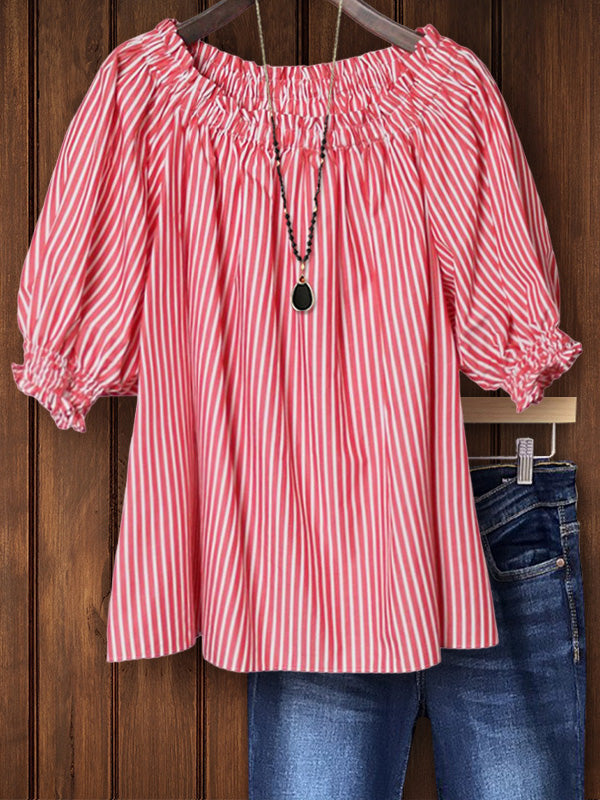 This shirt is made from cotton fabric to provide excellent comfort and breathability. The classic vertical stripe print adds a touch of sophistication and visual interest. Gathering details at the cuffs and elasticated collar add texture and chic to the shirt.