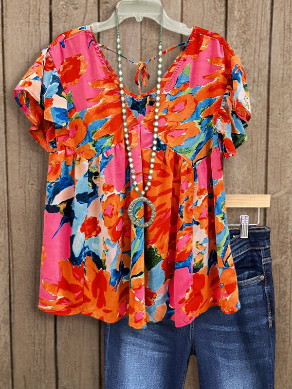This beautiful top is full of fun colors you just can’t resist! Perfect with denim or even throw this on with white skinnies or shorts this Spring and Summer! Flirty, fun, and so feminine!