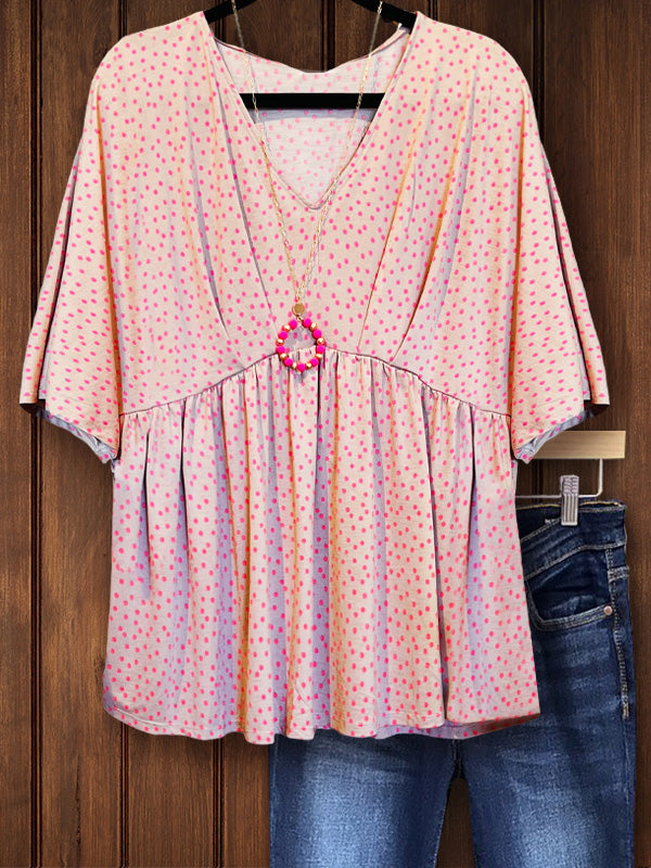 The top is decorated with a classic polka dot pattern, and the evenly distributed polka dots add a playful and retro feel. The pleat details are gathered at the waist, which can well modify your waistline. The pleated silhouette and loose dolman sleeves infuse the design with charming femininity and style.