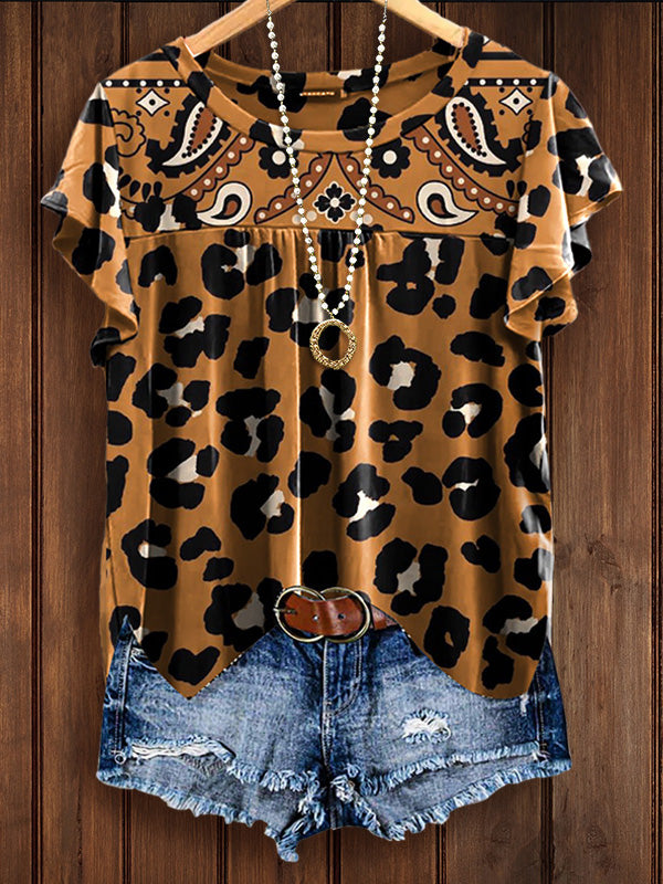 The top features a bold leopard print with bold brown accents. This classic animal print adds a touch of wild sophistication and style to the outfit, making it a highlight in your casual wardrobe. The loose fit and soft fabric combine to ensure all-day comfort and style.