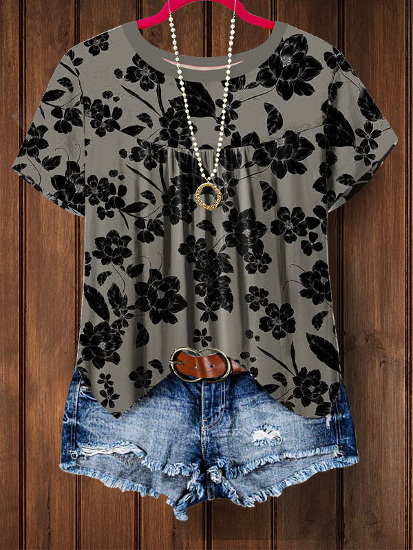The floral print is the defining feature of this top bringing a touch of nature-inspired beauty to the garment. The flowers and leaves are artistically arranged creating a harmonious and visually appealing pattern. The ruffle sleeves add a playful and feminine touch to the top. The ruched detail involves gathering fabric to create soft folds adding texture and dimension to the top.