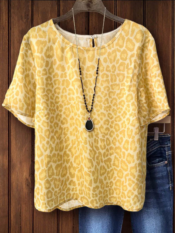 Show off your energetic enthusiasm in this lightweight leopard print top. A bright yellow leopard print adds a pop of color to your outfit, while the lightweight, breathable fabric ensures all-day comfort. Wear it with casual denim pants or shorts during the warmer months.