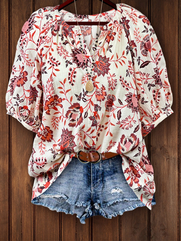 This shirt is made of cotton to ensure coolness and durability. Button details add a functional and decorative element, pleated silhouettes ensure comfort and style, and natural floral prints take you into a romantic summer garden.