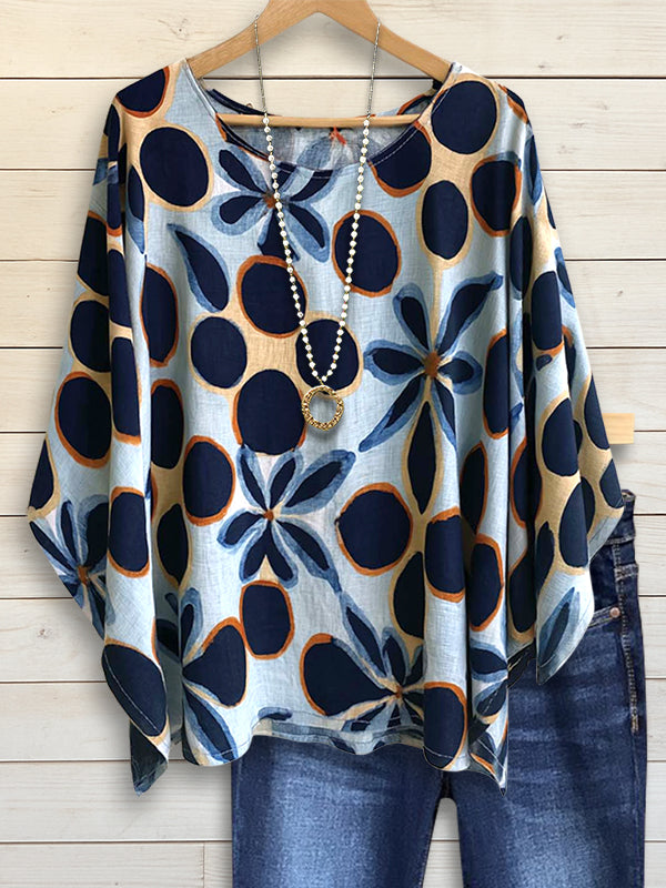 Bring retro charm to your wardrobe with this oversized batwing sleeve top. The bold navy floral pattern pops on a soft blue base, giving off major vintage vibes with effortless style.