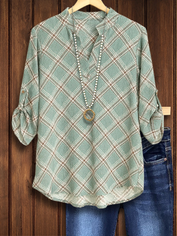 Relaxed, timeless, and effortlessly cool—the Sage Plaid Everyday Top is your weekday-to-weekend favorite. Soft fabric and button-tab sleeves offer comfort and versatility, while the subtle plaid keeps things classic. Perfect layered or worn on its own for laid-back charm.