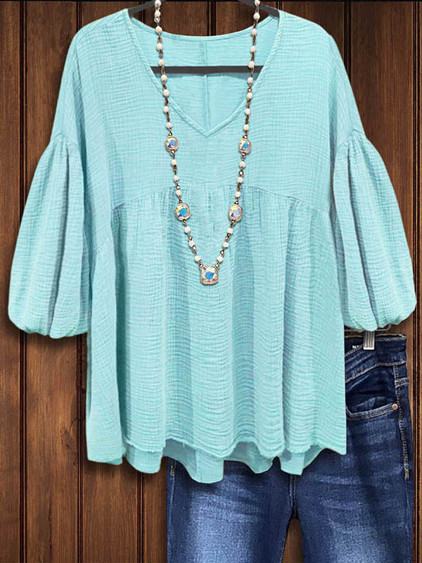 Embrace romantic allure with our Solid Color Lantern Sleeve Casual Blouse. Featuring voluminous lantern sleeves and a relaxed fit, this blouse exudes feminine charm with a contemporary twist. Whether paired with tailored trousers for the office or styled with jeans for a weekend outing, it's sure to make a statement wherever you go.