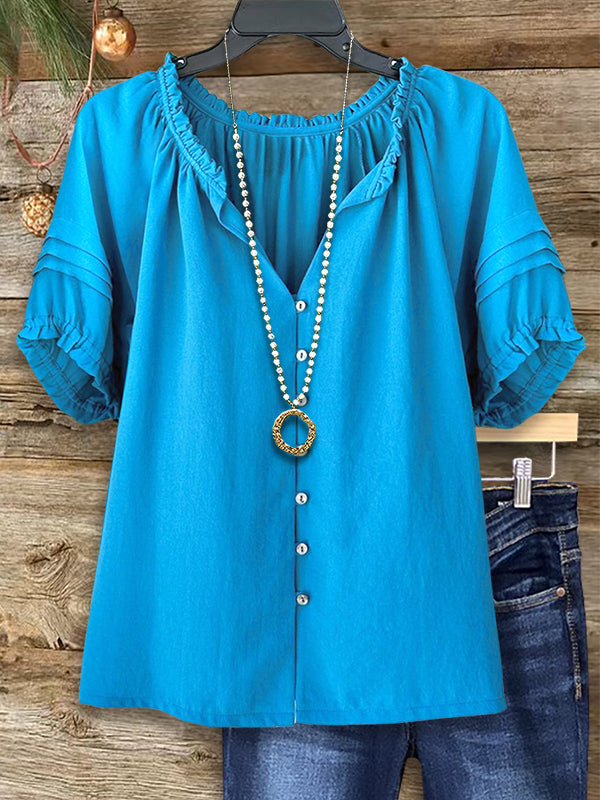 Effortlessly elegant, this solid color pleated casual blouse is a timeless addition to your wardrobe. Featuring soft pleats for a flattering fit and lightweight fabric for comfort, it?¡¥s perfect for pairing with jeans or skirts for a polished yet relaxed Southern style.