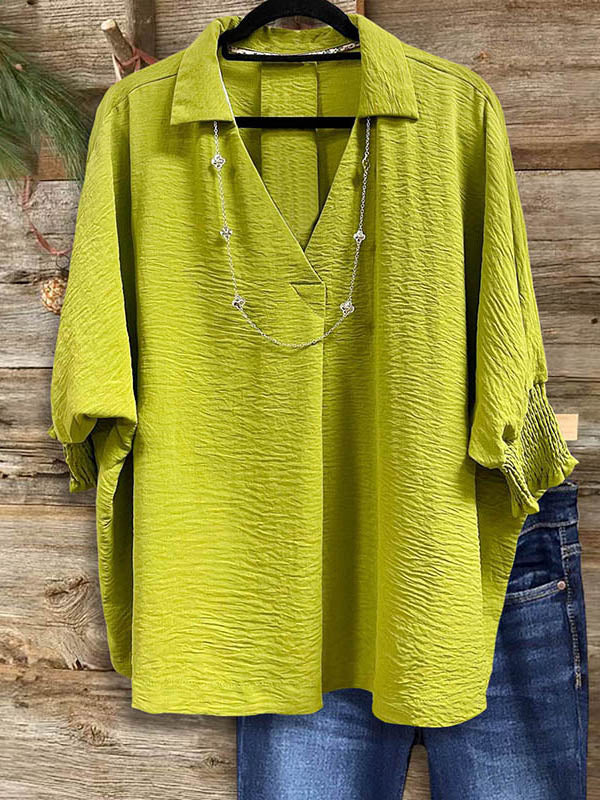 Experience effortless elegance with our Solid Color Pleated Loose Casual Blouse. Crafted from soft, flowing fabric and featuring delicate pleats, this blouse drapes beautifully for a flattering silhouette. Whether dressed up with statement jewelry or worn casually with denim, it's a versatile addition to any Southern woman's wardrobe.