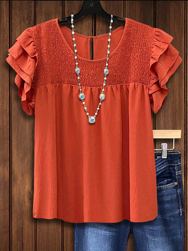 Add a touch of elegance to your southern wardrobe with our Solid Color Pleated Ruffle Casual Blouse! Featuring delicate pleats and feminine ruffles, this blouse exudes sophistication and charm. Whether you're attending a family gathering or enjoying a night out with friends, its solid color palette ensures effortless coordination and timeless style.