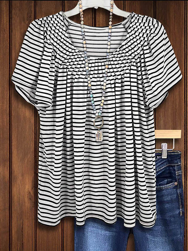 Stay chic and stylish with our Striped Printed Pleated Design Blouse. Adorned with classic stripes and pleated detailing, this blouse offers a timeless yet modern look. The relaxed fit allows for ease of movement, while the soft fabric ensures comfort. Whether paired with shorts for a casual outing or trousers for a more polished ensemble, this blouse is perfect for adding a sophisticated touch to your Southern style.