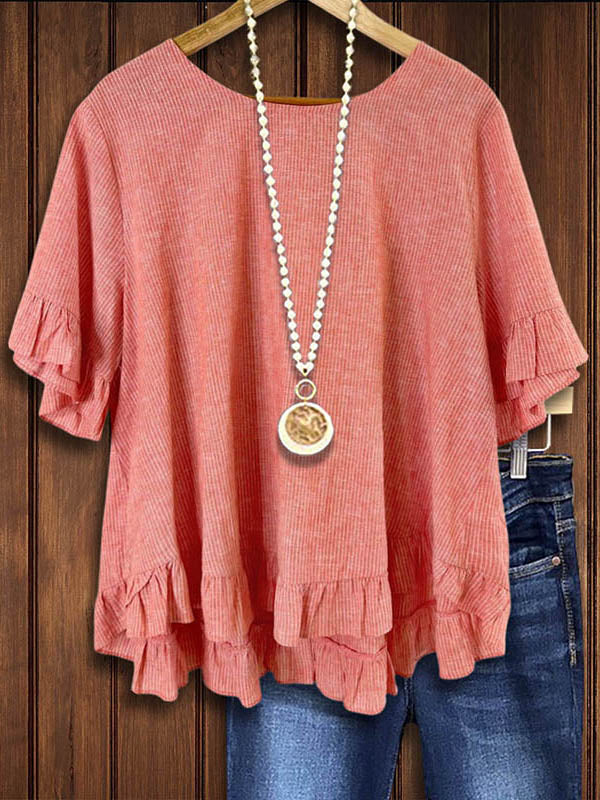 Make a stylish statement with our Striped Ruffled Back Button Blouse. The classic stripes add a touch of sophistication, while the ruffled back and button detailing create a fun and unique twist. Pair it with a skirt or denim for an effortlessly chic southern look that is sure to turn heads wherever you go.